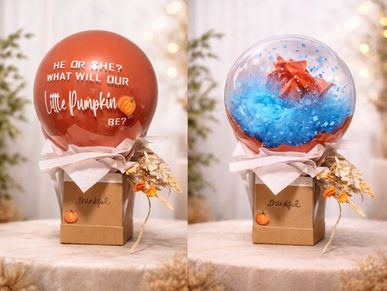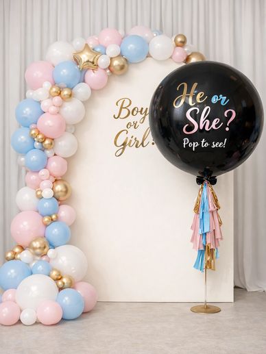 Experience a balloon filled with confetti and powder, complete with a protective shield to prevent any mess. Enjoy a fantastic gender reveal without the cleanup hassle. It's 100% customizable for your unique celebration/theme!